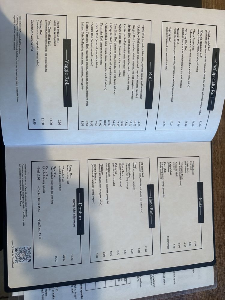 Cucumber, shiso, avocado, uni, salmon roe, salmon skin. Contain raw.